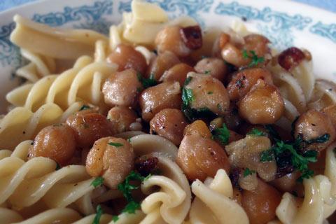 - By the time the chickpeas start to turn golden brown, your pasta should be close to ready.